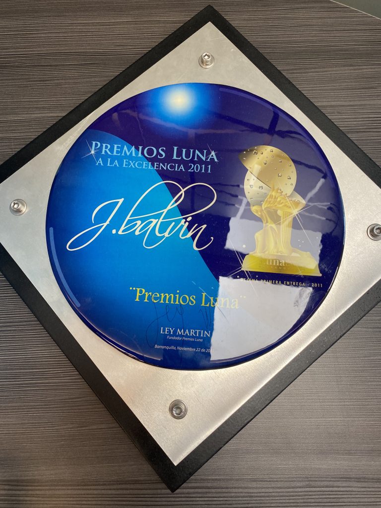El artista urbano J Balvin obtuvo un reconocimiento como “Excelencia Urbano” en los Premios luna realizados el 20 de noviembre del 2012.